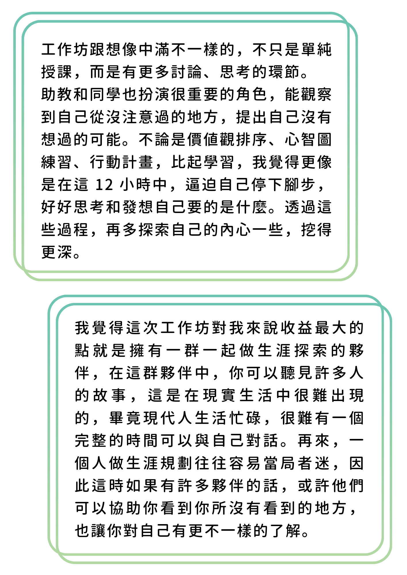 - 8 年以上生涯探索、自信培力、順流金錢信念講座、團體及工作坊經驗